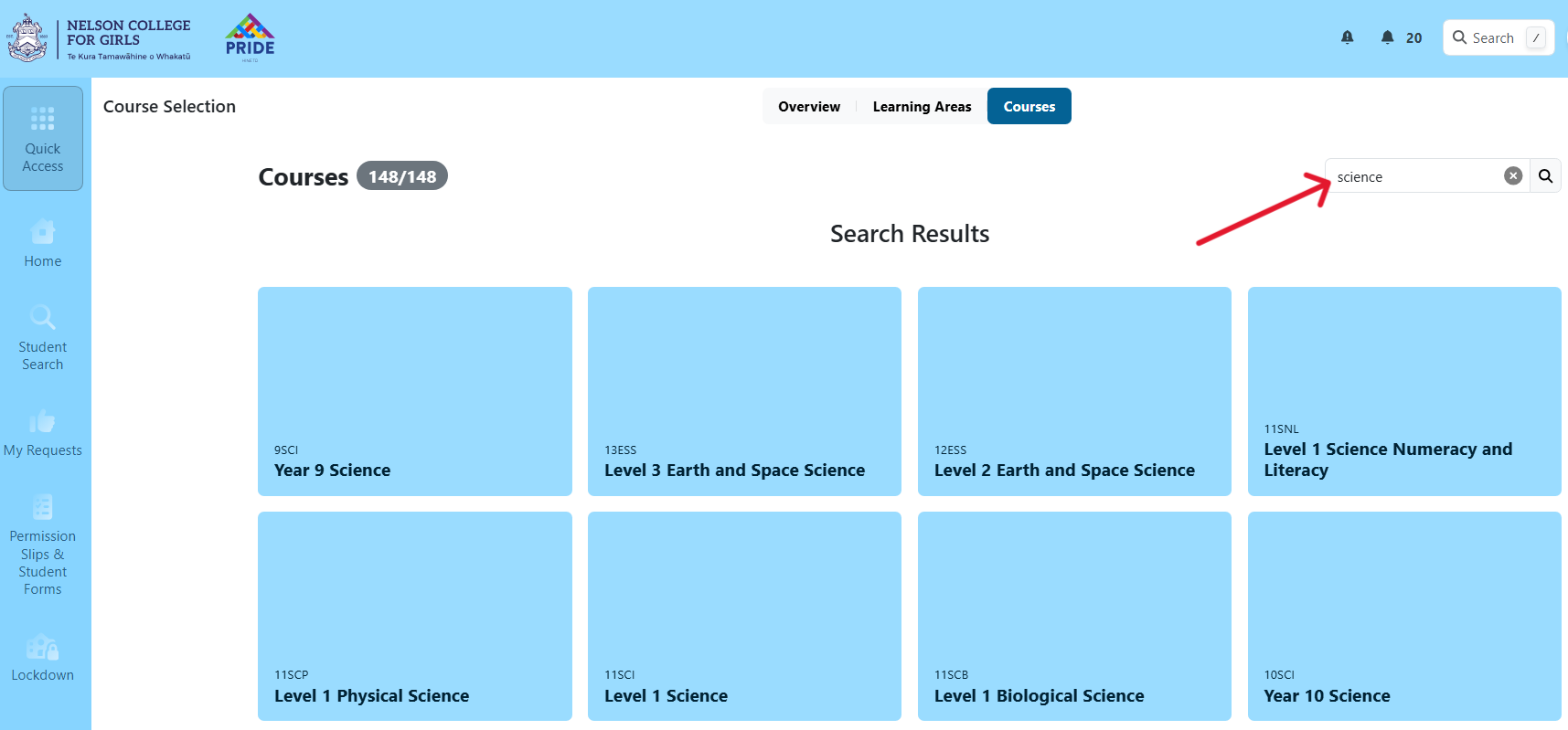 Instructions: Enter key words e.g. Science or Year 9, Year 10, Level 1 (Year 11), Level 2 (Year 12) or Level 3 (Year 13) to find out more.